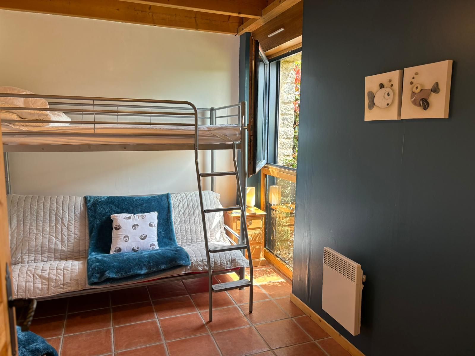 Deze kamer beschikt over een stapelbed met een eenpersoonsbed erboven en een dubbele futonbank eronder, die kan worden omgebouwd tot een tweepersoonsbed. Het bevat een ladekast, een nachtkastje en een kledingkast. Een groot raam biedt uitzicht op de binnenplaats.