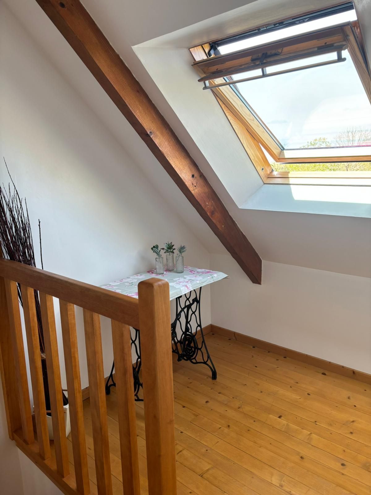Bovenaan de trap op de tweede verdieping vindt u een mooie ruimte met een tafel die als bureau kan worden gebruikt. Het heeft een veluxraam met uitzicht op de Avenvallei, waardoor er veel natuurlijk licht binnenkomt.